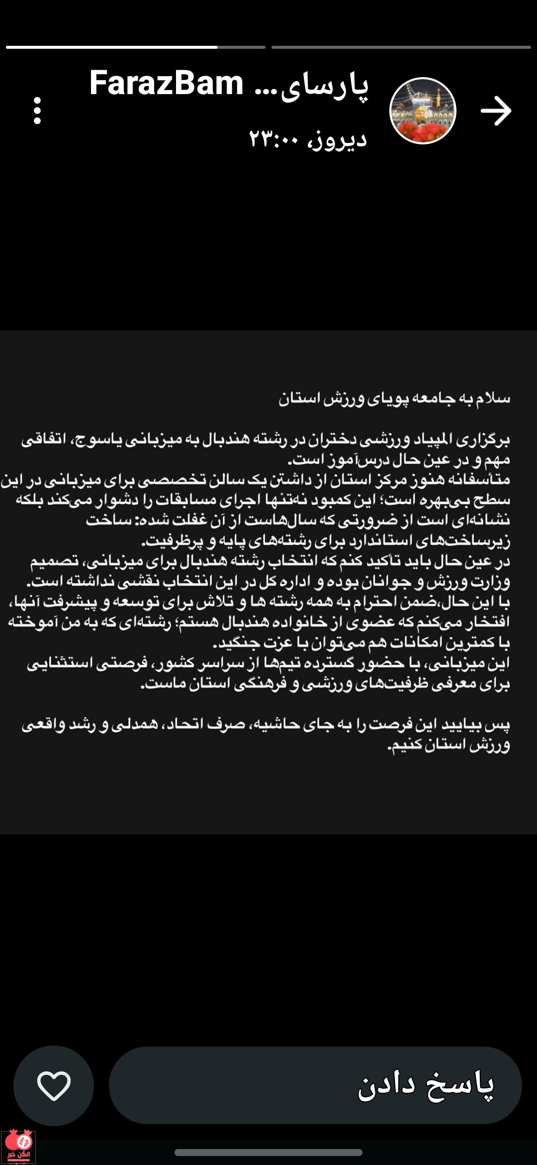 > «بیایید این فرصت را بهجای حاشیه، صرف اتحاد، همدلی و رشد واقعی ورزش استان کنیم.»
